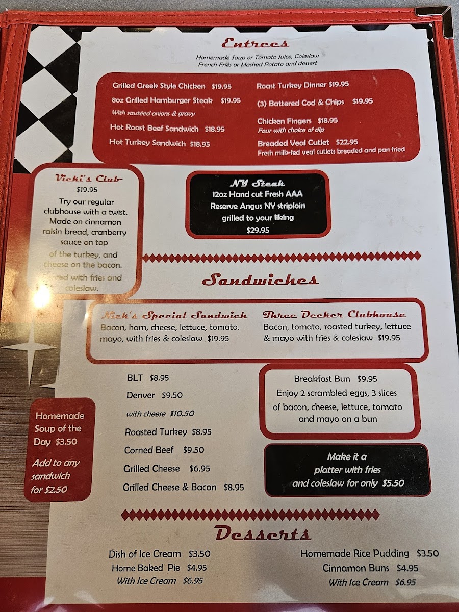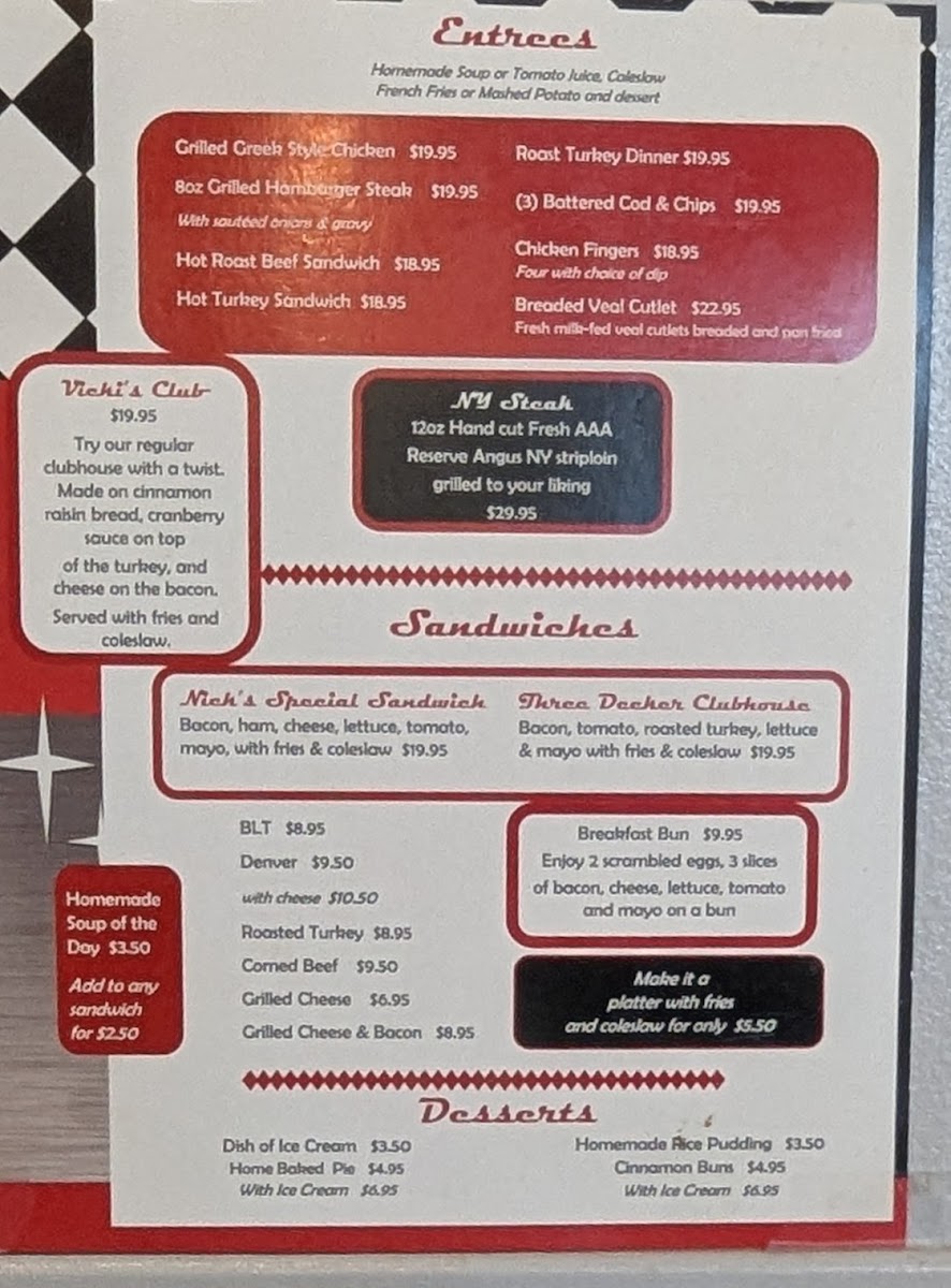 With a menu featuring everything from clubhouse sandwiches to homemade desserts, Nick's Inn caters to all appetites. Customers appreciate the friendly, fast service, making each visit not just a meal, but a memorable experience. Whether you're stopping for a light snack or a full dinner, Nick's Inn truly has something for everyone.